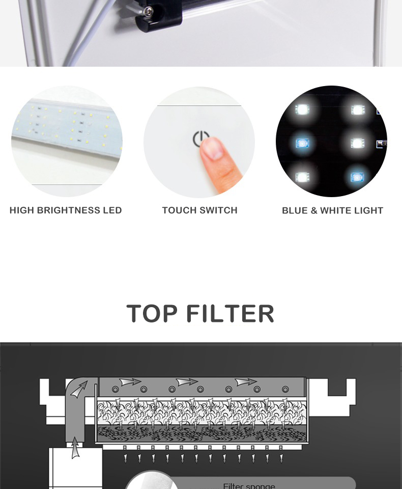 Rectangle Small Fish Tank Glass Aquarium With Top Filter And LED Lighting Product name: Aquarium Fish ...